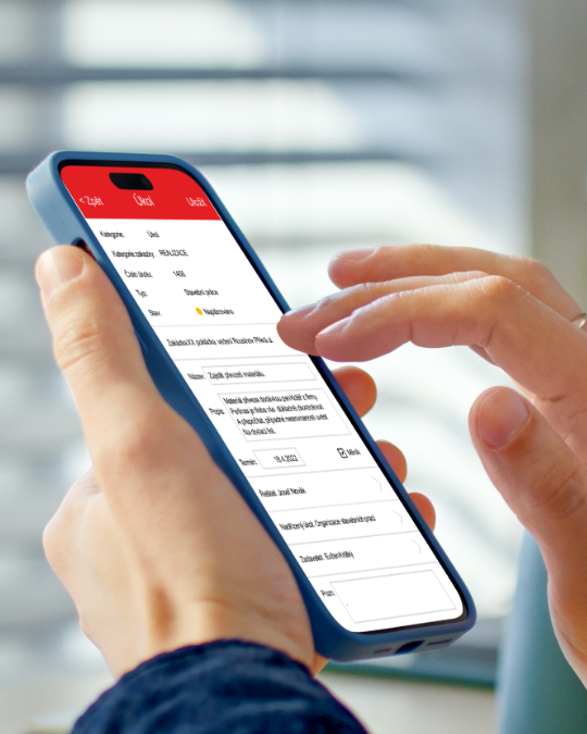 - Docházka a mobilní aplikace: Evidence práce techniků přímo v terénu pomocí speciální mobilní aplikace.